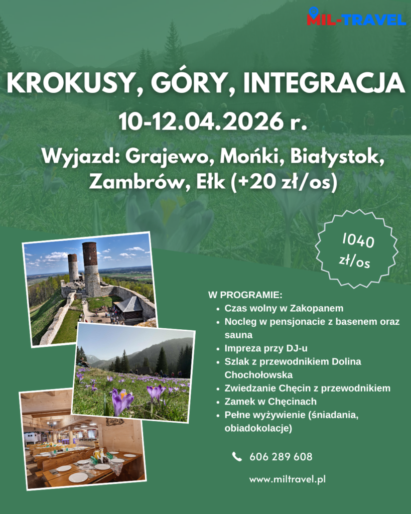 Krokusy, Góry i Integracja – 3 dni w Tatrach i Chęcinach 10-12.04.2026 r.